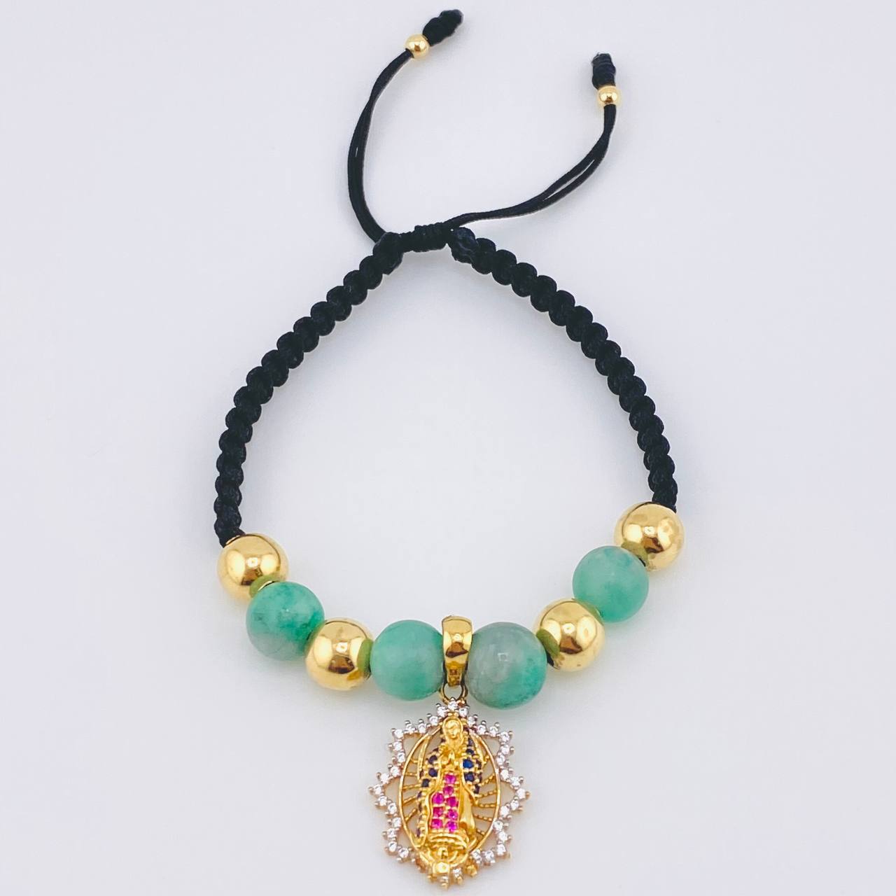 Pulsera Negra Dije Virgen Guadalupe 3.85gr / 7mm-3mm Oro Amarillo 18K *